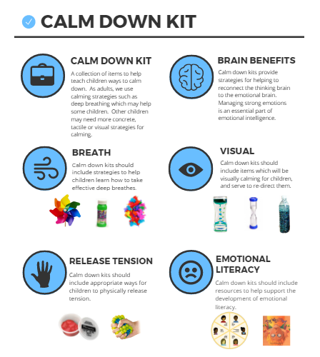 You can look at a Calm Down Kit to learn about how to make things to learn about calming down.