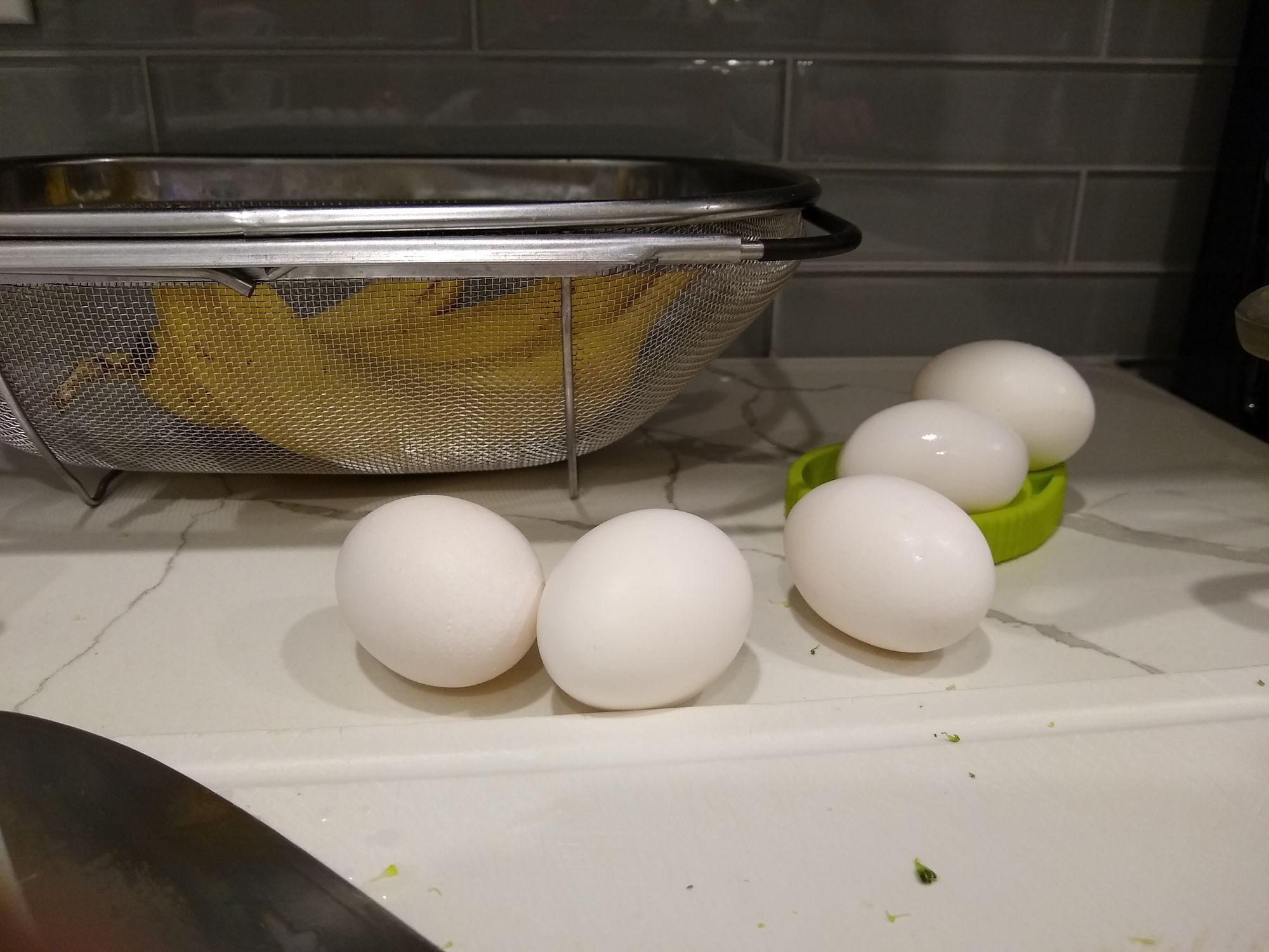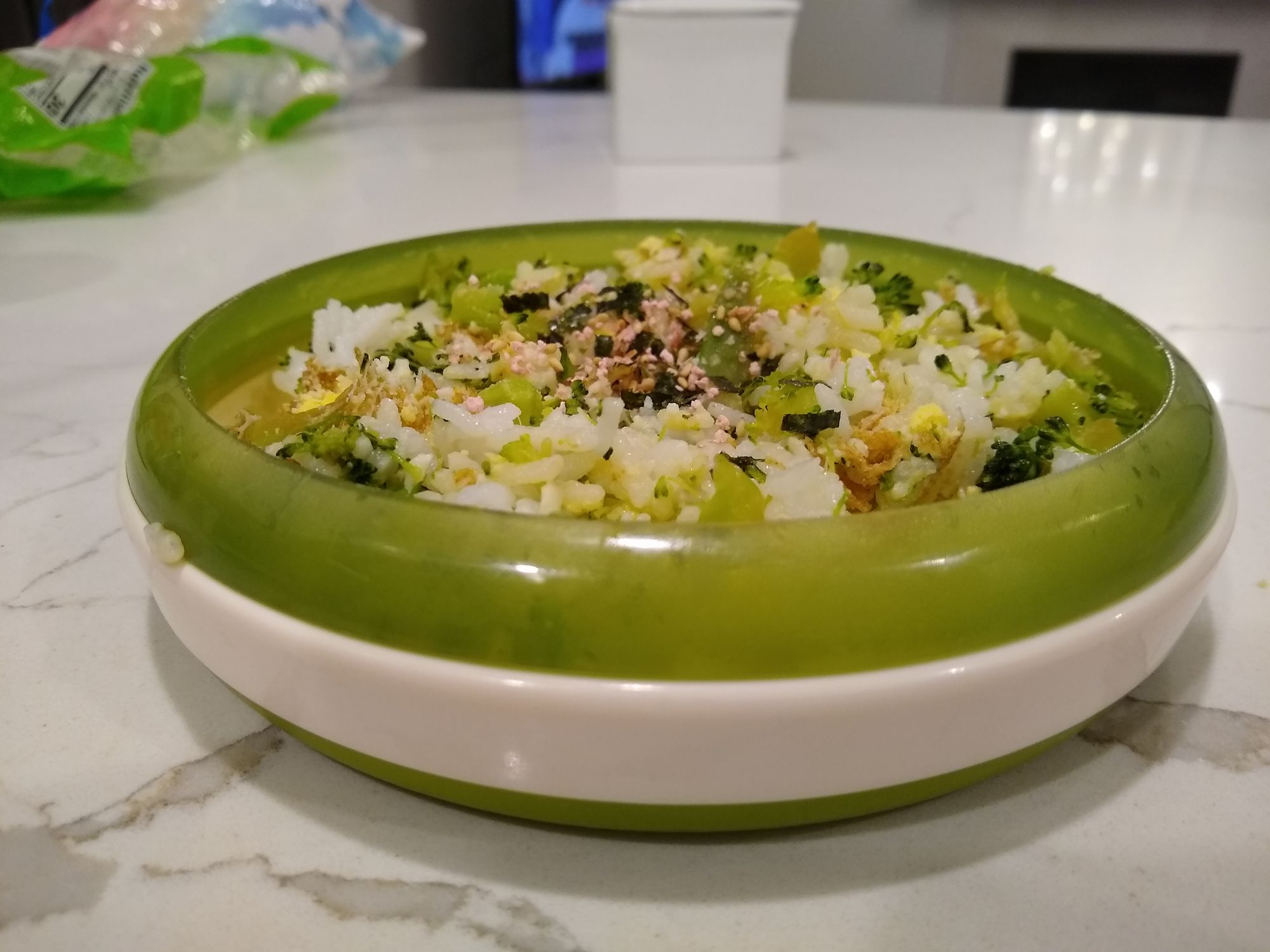 Brocolli, Eggs, Rice, and Rice Seasoning.