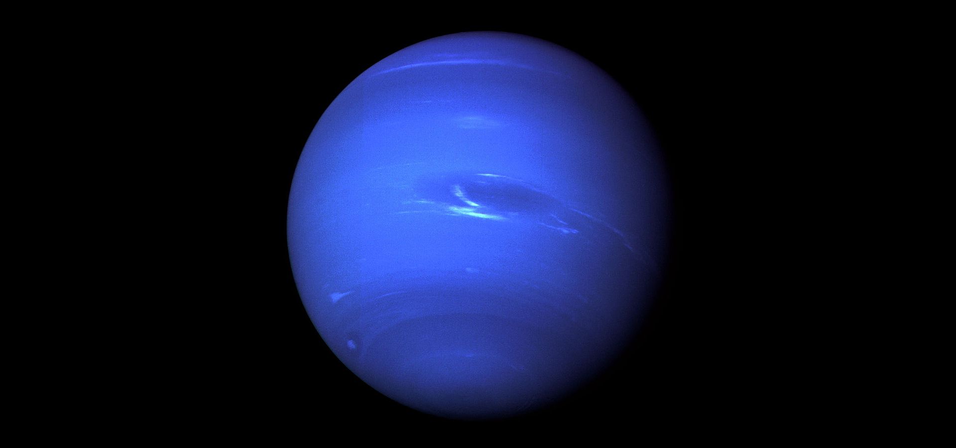 Dark, cold and whipped by supersonic winds, giant Neptune is the eighth and most distant major planet orbiting our Sun. More than 30 times as far from the Sun as Earth, Neptune is not visible to the naked eye. In 2011, Neptune completed its first 165-year orbit since its discovery.